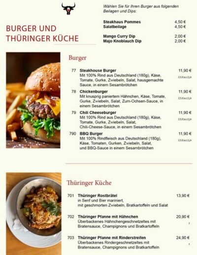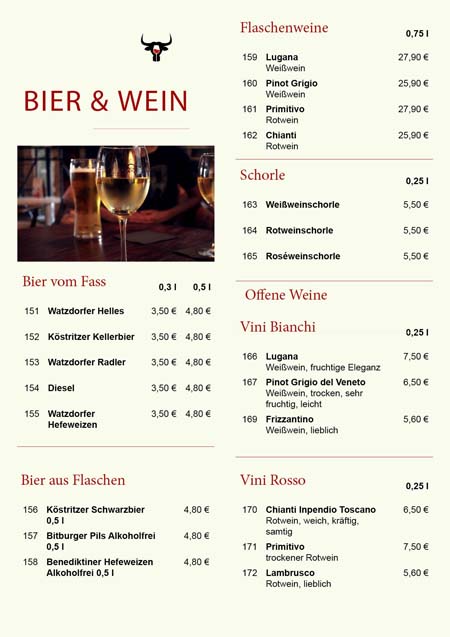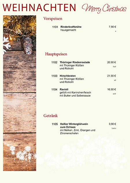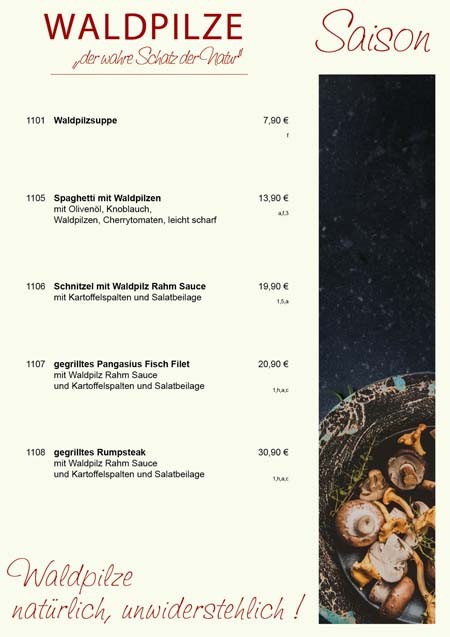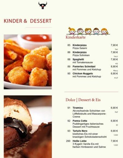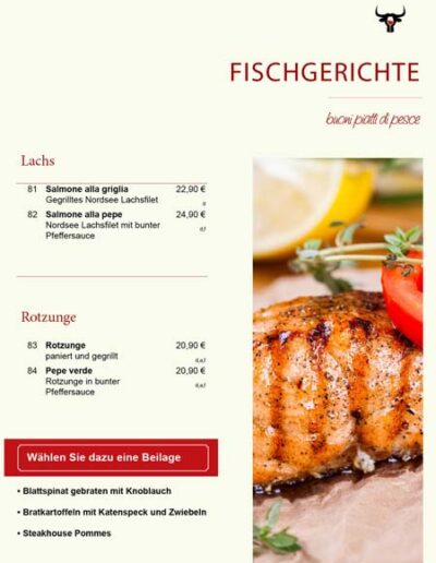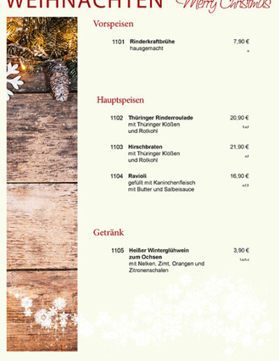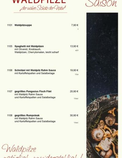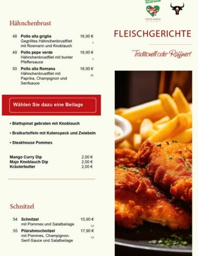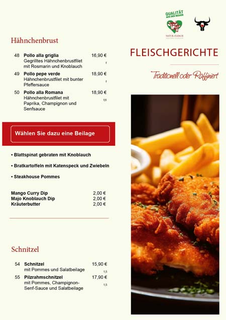 Neben den beliebten À-la-carte-Gerichten bieten wir Ihnen zusätzlich leckere festliche Menüs und nach Absprache Catering-Service an.