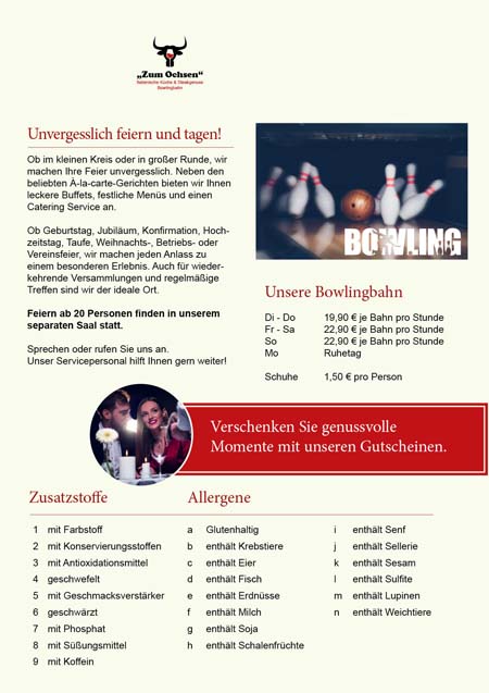 Verschenken Sie genussvolle Momente mit unseren Gutscheinen aus dem Restaurant „Zum Ochsen“!